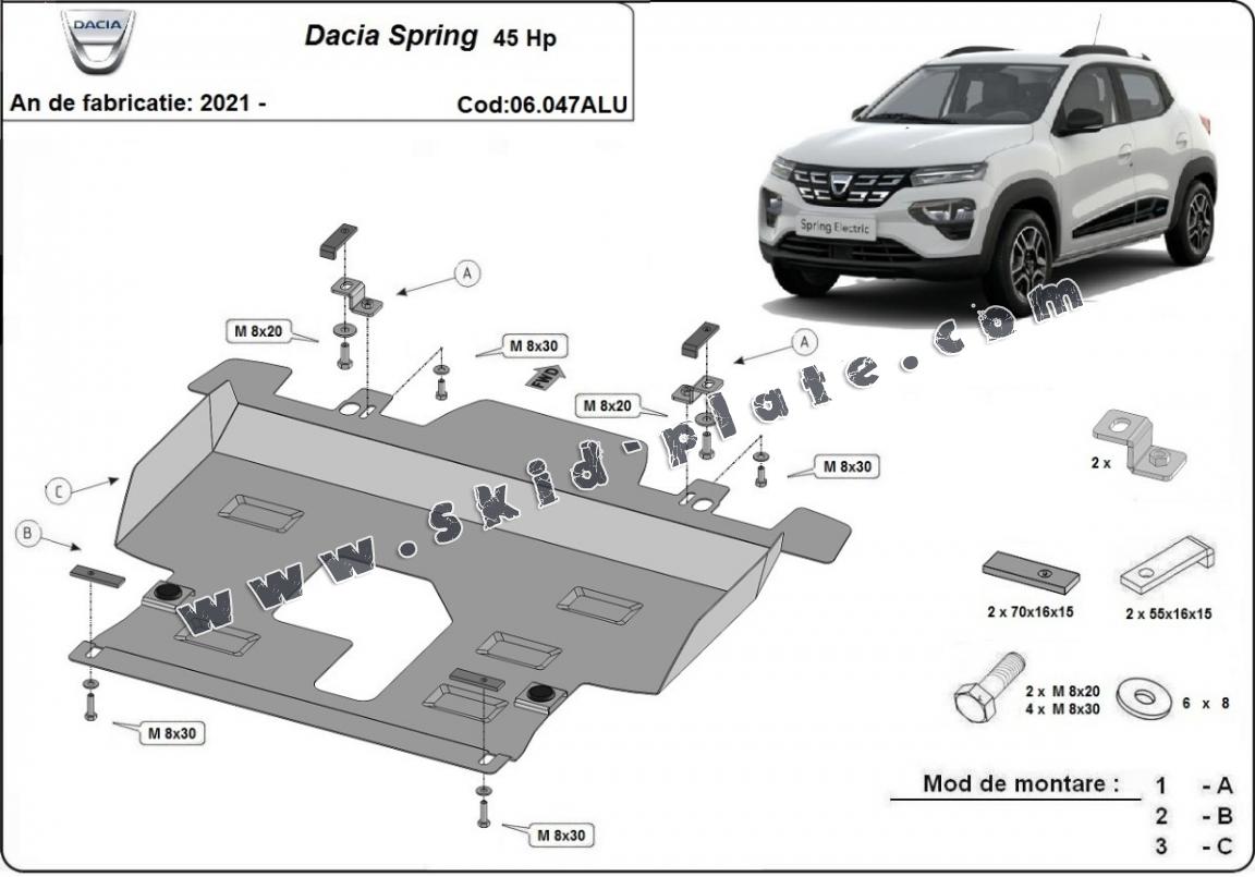Aluminium skid plate for Dacia Spring (2021-2026)