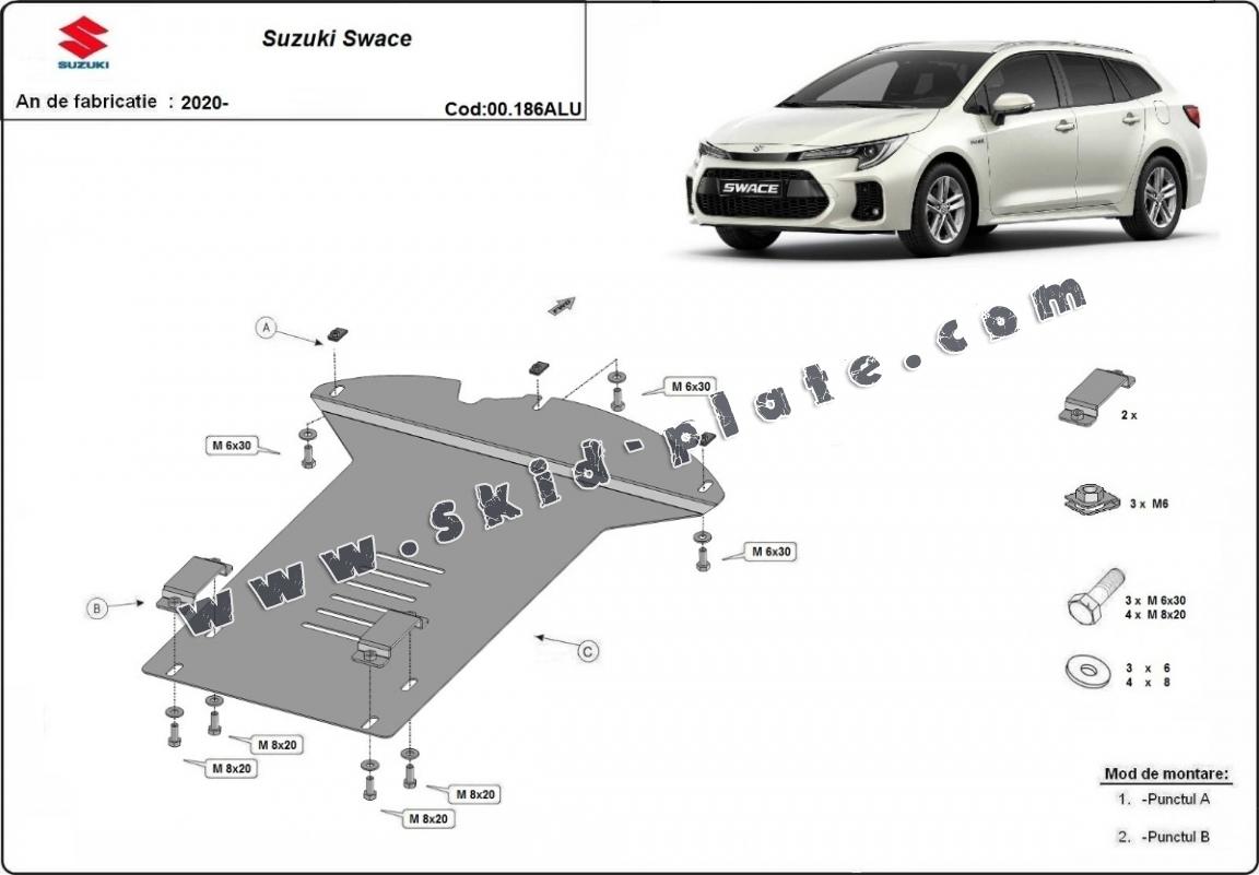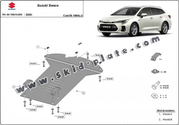 Skid plate for the protection of the: Catalytic converter The skid plate is new and fits perfectly for all versions of Suzuki Swace manufactured between 2020 and 2026. Made out of 3 mm thick Aluminium plate. The shields are made of aluminum, but the mounting brackets are made of steel. Screws, nuts, clips, all fastening accessories are included. All skid plates are powder coated to prevent corrosion. The exterior of the skid plate is provided with Aluminium reinforcements, which increases the resistance to impact. |