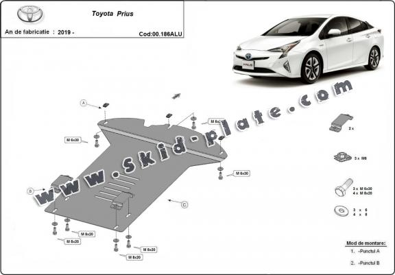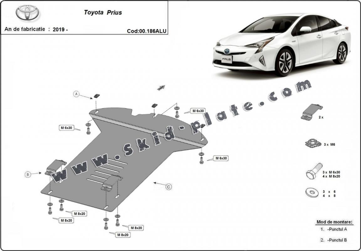 Skid plate for the protection of the: Catalytic converter The skid plate is new and fits perfectly for all versions of Toyota Prius manufactured between 2019 and 2026. Made out of 3 mm thick Aluminium plate. The shields are made of aluminum, but the mounting brackets are made of steel. Screws, nuts, clips, all fastening accessories are included. All skid plates are powder coated to prevent corrosion. The exterior of the skid plate is provided with Aluminium reinforcements, which increases the resistance to impact. |