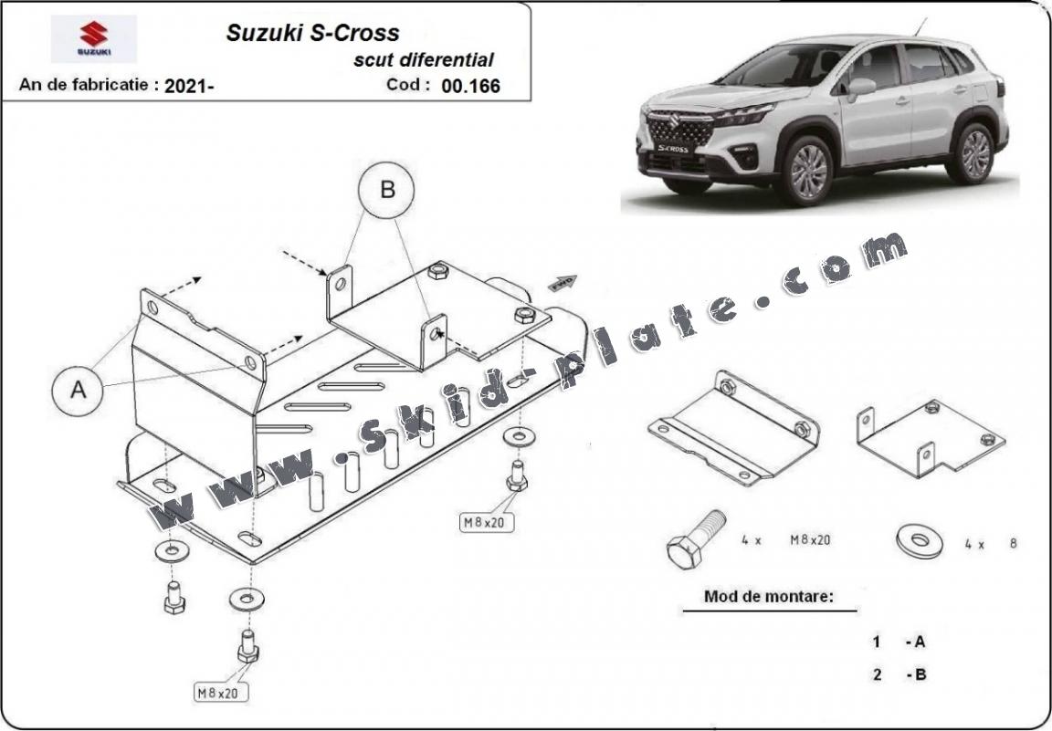 Aluminum diferential skid plate for Suzuki S-Cross (2013-2023)