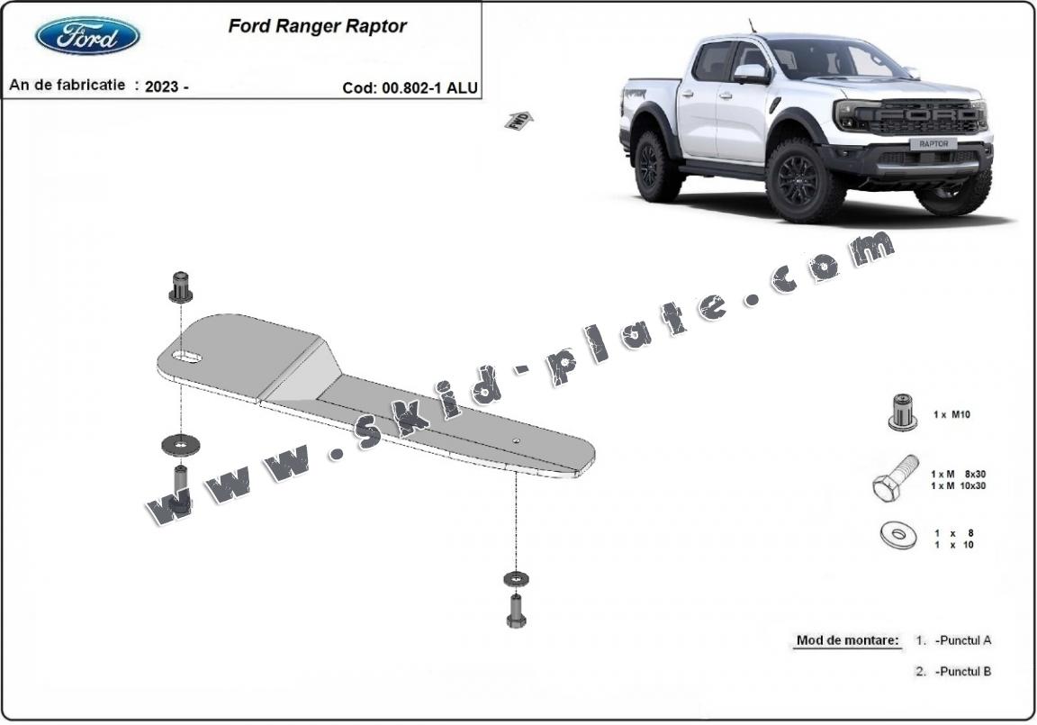 Skid plate for the protection of the: Fuel filter, Fuel hoses The skid plate is new and fits perfectly for all versions of Ford Ranger Raptor manufactured between 2023 and 2026. Made out of 4 mm thick Aluminium plate. The shields are made of aluminum, but the mounting brackets are made of steel. Screws, nuts, clips, all fastening accessories are included. All skid plates are powder coated to prevent corrosion. The exterior of the skid plate is provided with Aluminium reinforcements, which increases the resistance to impact. |