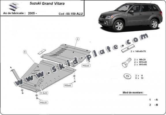 Aluminum gearbox and transfer case skid plate for Suzuki Grand Vitara 2 (2005-2019)