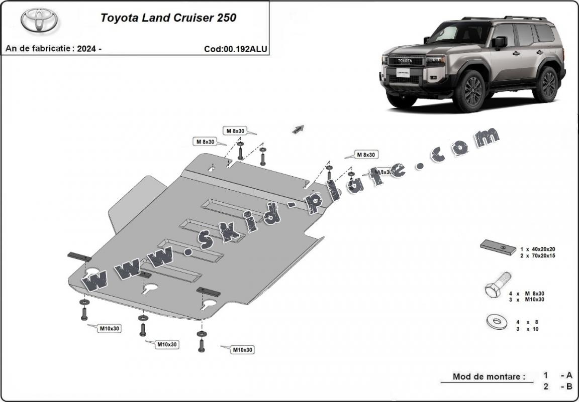 The skid plate is new and fits perfectly for the Toyota Land Cruiser 250, with the following engine/drive versions: Toate - manufactured between 2024 and 2026.