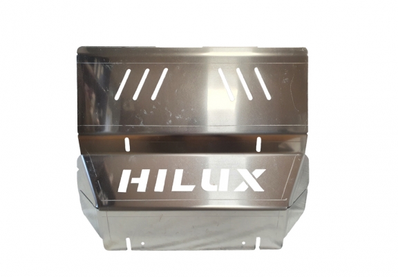 Skid plate for the protection of the: radiator The skid plate is new and fits perfectly for all versions of Toyota Hilux Invincible manufactured between 2021 and 2026. Made out of 4 mm thick Aluminium plate. The shields are made of aluminum, but the mounting brackets are made of steel. Screws, nuts, clips, all fastening accessories are included. All skid plates are powder coated to prevent corrosion. The exterior of the skid plate is provided with Aluminium reinforcements, which increases the resistance to impact. |