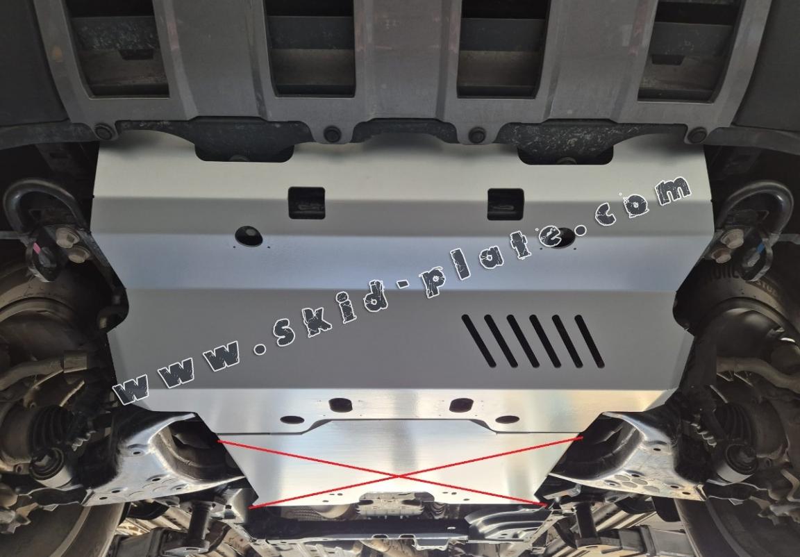 The exterior of the skid plate is provided with Aluminium reinforcements, which increases the resistance to impact.
