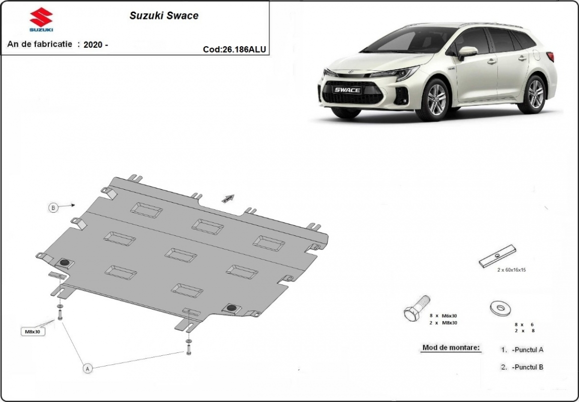 The skid plate is new and fits perfectly for all versions of Suzuki Swace manufactured between 2020 and 2026.