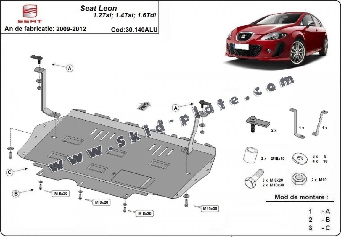 Aluminum skid plate for the protection of the engine and the gearbox for Seat Leon Mk2 (2009-2012)