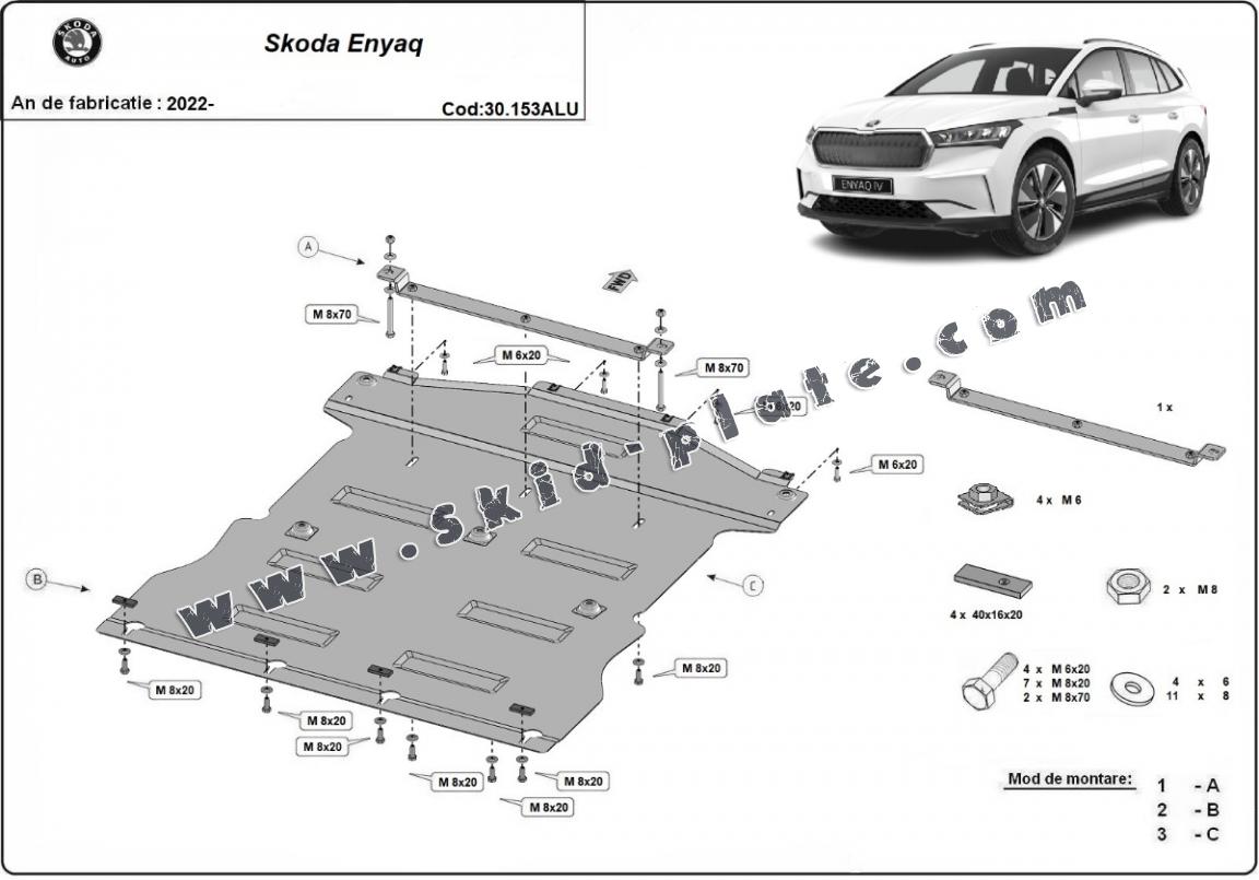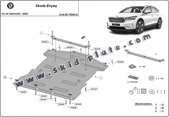 Aluminum skid plate for the protection of the engine and the gearbox for Skoda Enyaq (2022-2026)