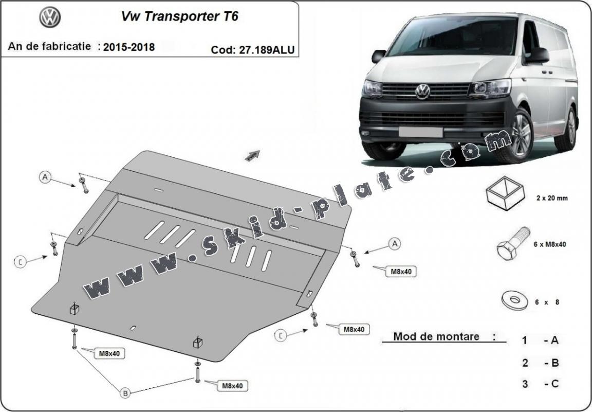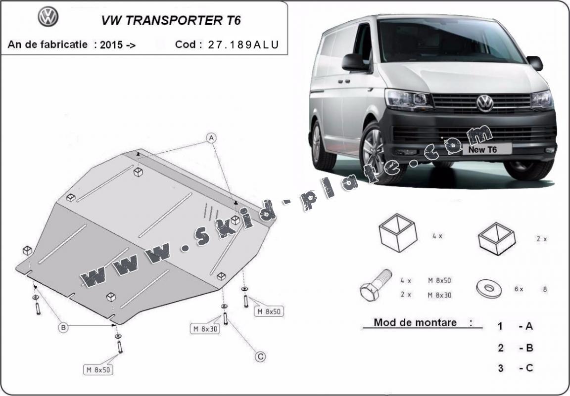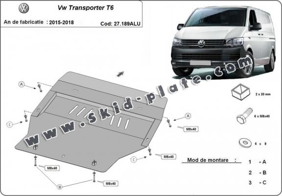 Aluminum skid plate for Volkswagen Transporter T6