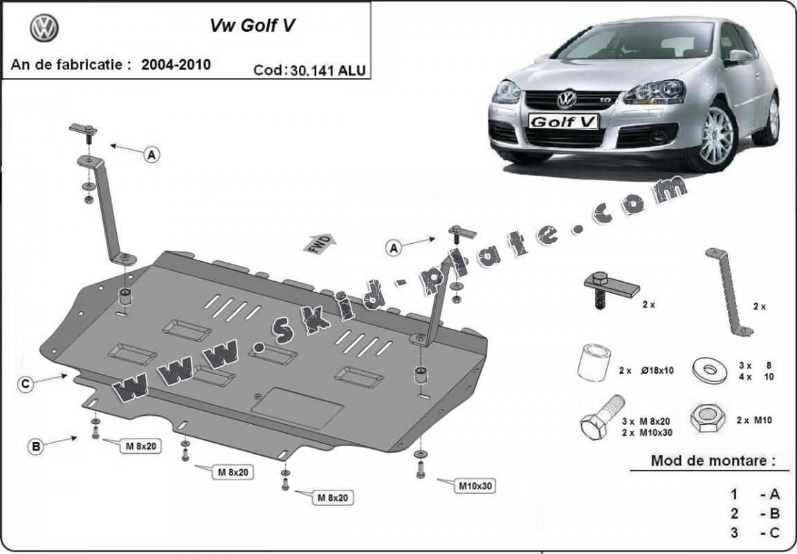 Aluminum skid plate for Vw golf mk5 (2004-2010)
