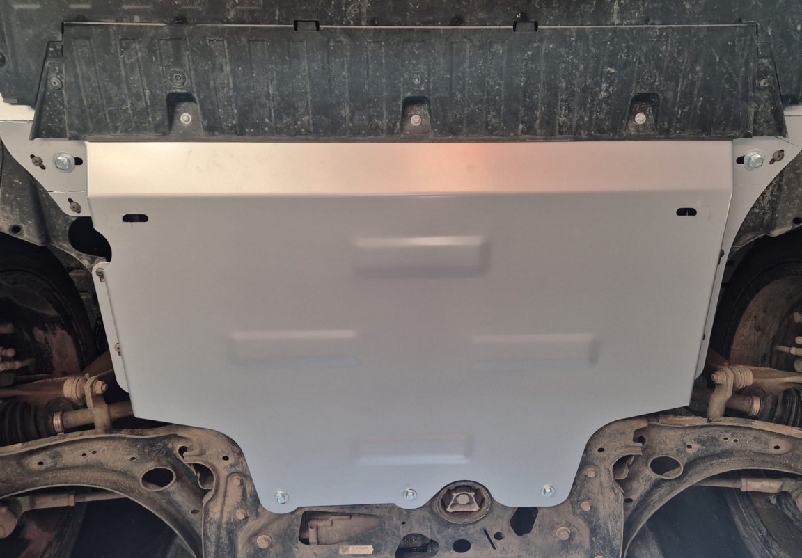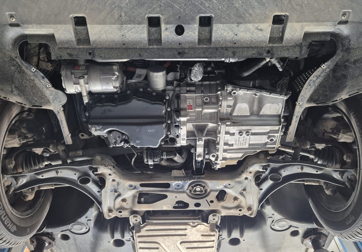 Skid plate for the protection of the: engine, gearbox, radiator The skid plate is new and fits perfectly for the VW Tiguan, with the following engine/drive versions: hybrid - manufactured between 2024 and 2026. Made out of 3 mm thick Aluminium plate. The shields are made of aluminum, but the mounting brackets are made of steel. Screws, nuts, clips, all fastening accessories are included. All skid plates are powder coated to prevent corrosion. The exterior of the skid plate is provided with Aluminium reinforcements, which increases the resistance to impact. |