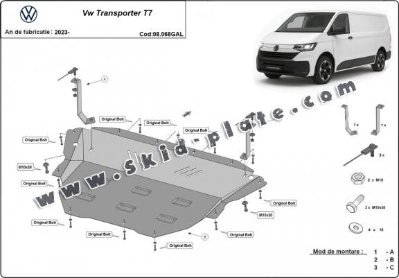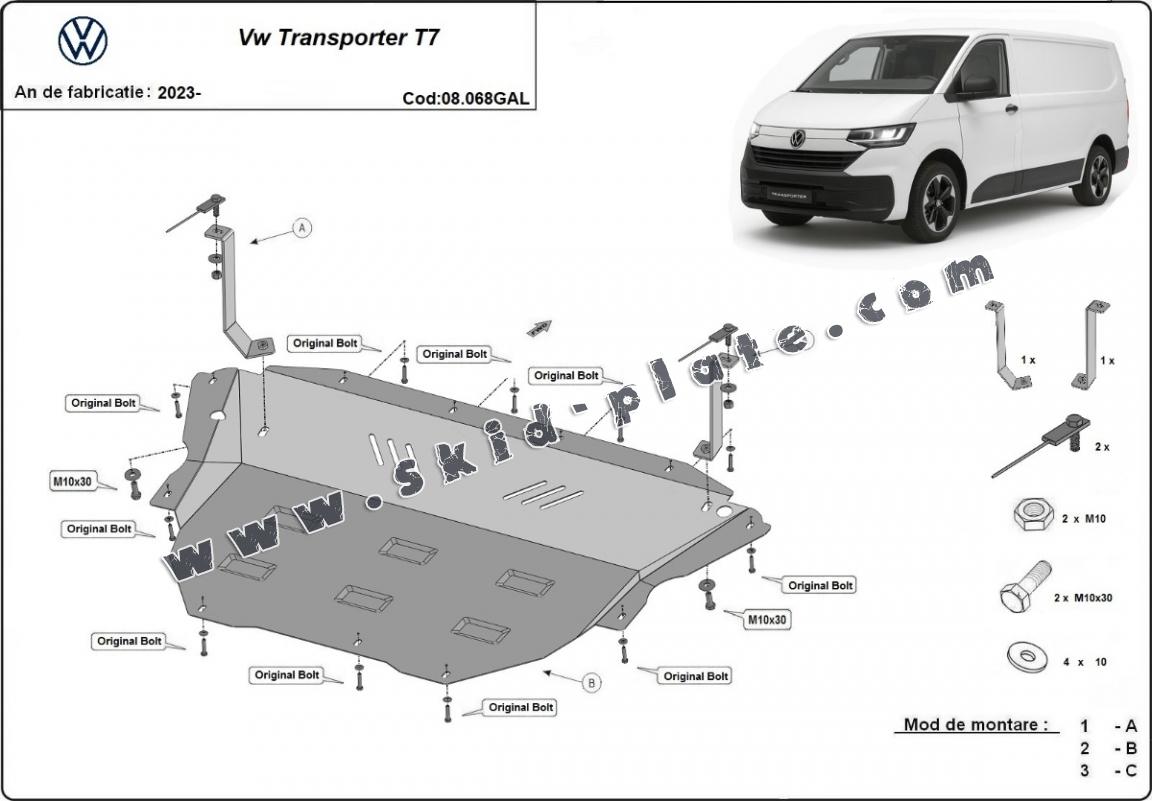 Galvanized steel skid plate for Volkswagen Transporter T7 (2023-2026)