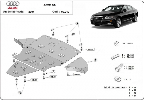 Steel skid plate for Audi A6 with side flaps (2004-2011)