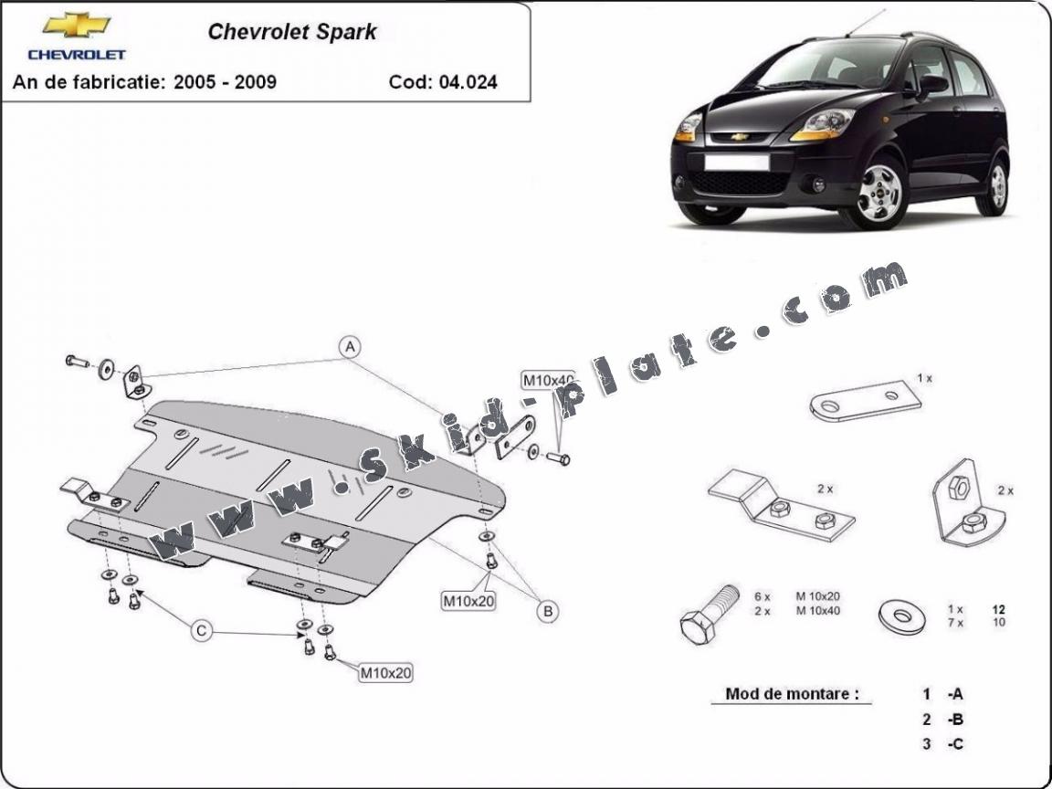 | The skid plate is new and fits perfectly for all versions of Chevrolet Spark manufactured between 2005 and 2009. |
