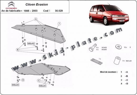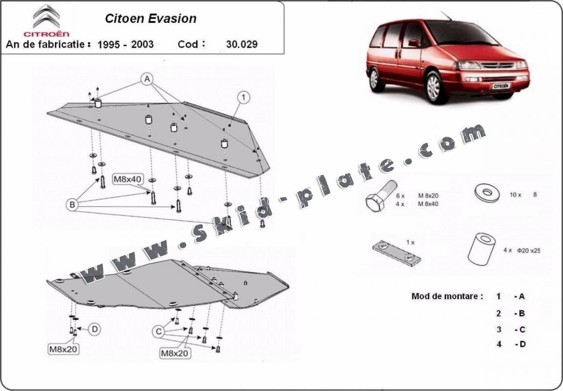 Steel skid plate for Citroen Evasion