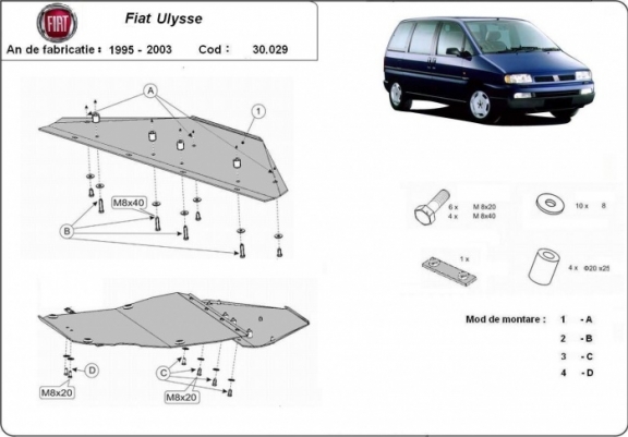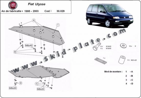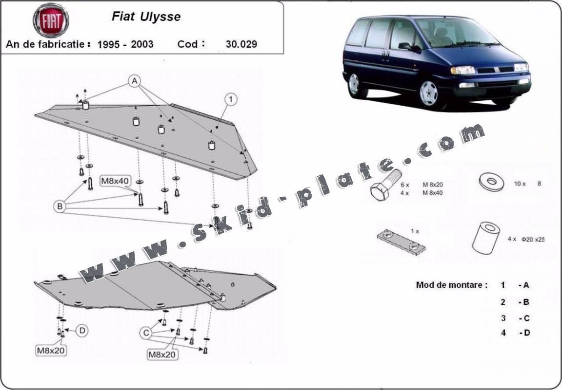 The skid plate is new and fits perfectly for all versions of Fiat Ulysse manufactured between 1995 and 2003.