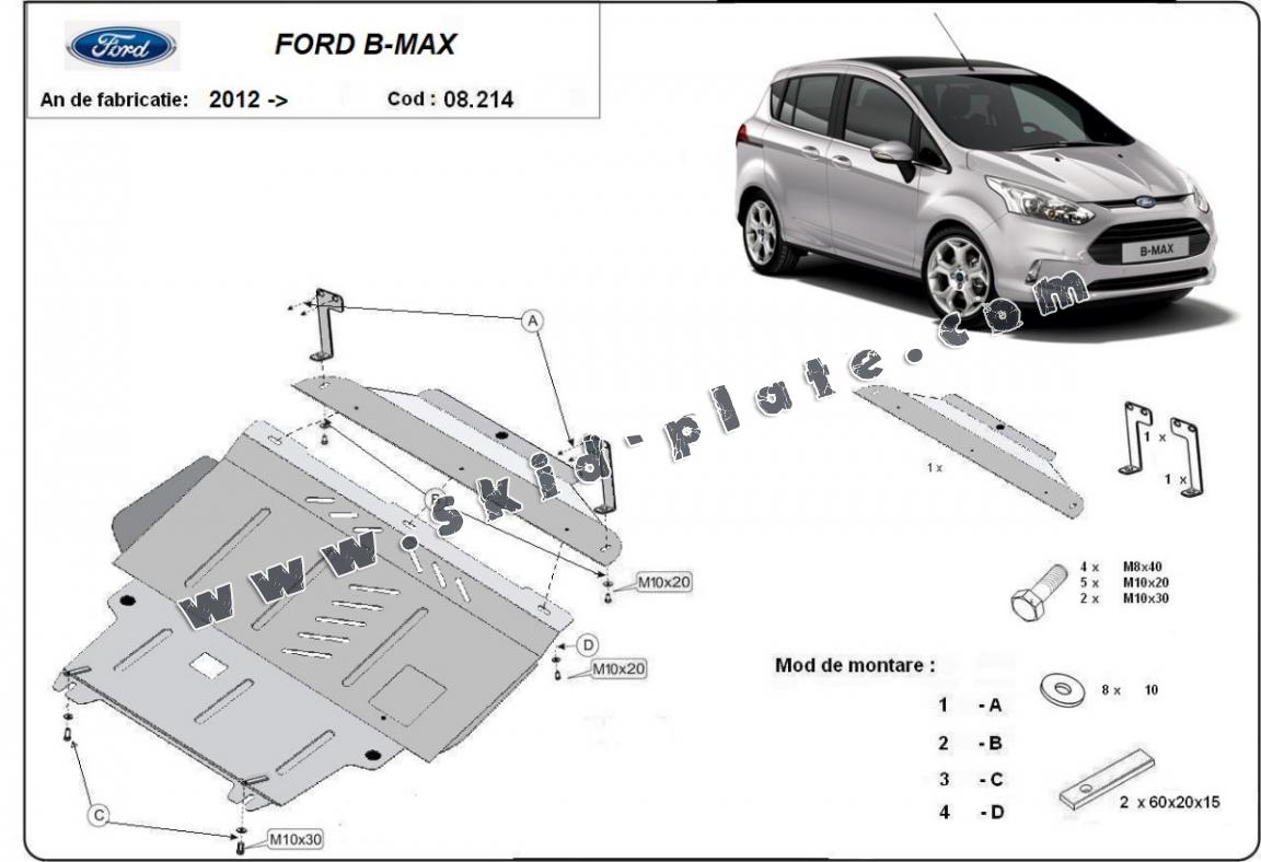 | The skid plate is new and fits perfectly for all versions of Ford B-Max manufactured between 2012 and 2020. |