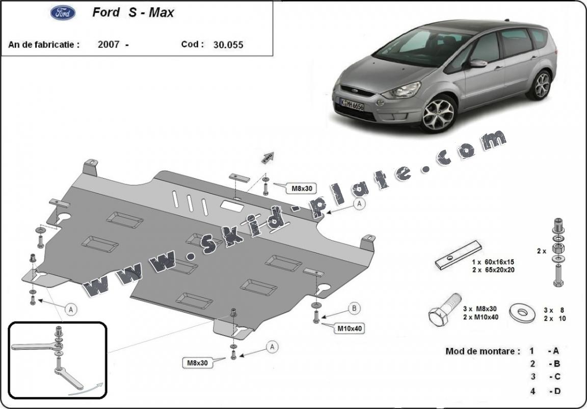 Skid plate for the protection of the: engine, gearbox, radiator The skid plate is new and fits perfectly for all versions of Ford S-Max manufactured between 2006 and 2015. Made out of 2 mm thick Steel plate. Screws, nuts, clips, all fastening accessories are included. All skid plates are powder coated to prevent corrosion. The exterior of the skid plate is provided with Steel reinforcements, which increases the resistance to impact. |