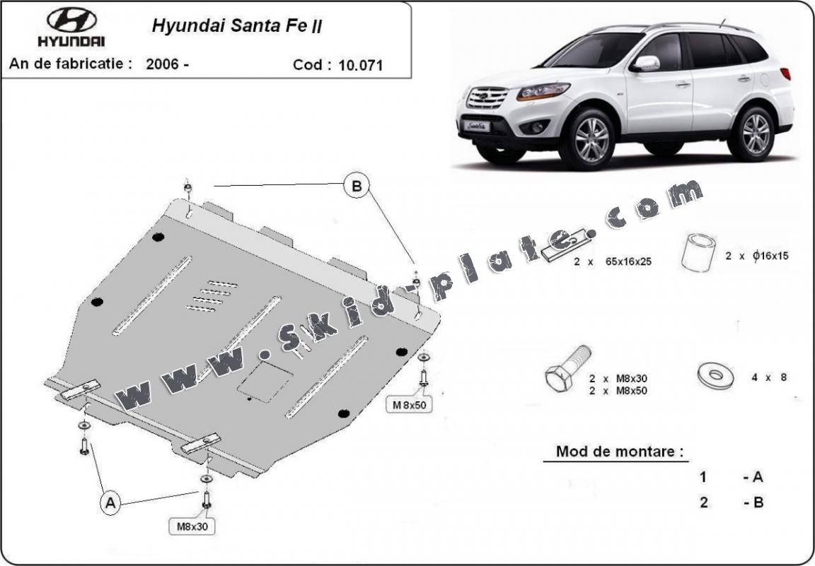 | The skid plate is new and fits perfectly for all versions of Hyundai Santa Fe manufactured between 2006 and 2011. |