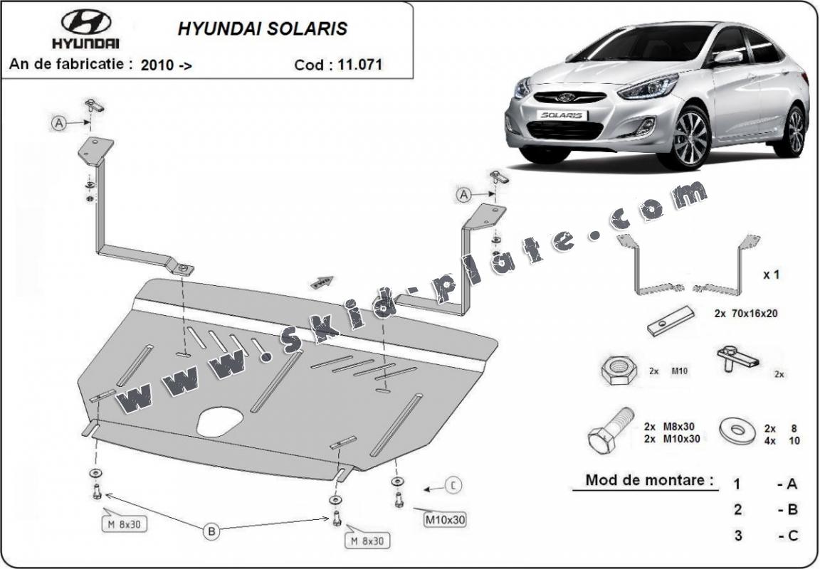 The skid plate is new and fits perfectly for all versions of Hyundai Solaris manufactured between 2010 and 2020.