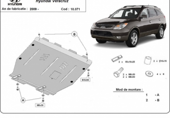 The skid plate is new and fits perfectly for all versions of Hyundai Veracruz manufactured between 2009 and 2015.