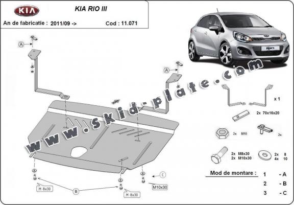 Steel skid plate for Kia Rio 3