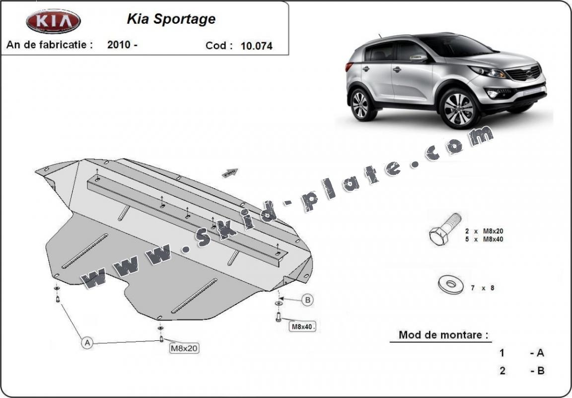 | The skid plate is new and fits perfectly for the Kia Sportage, with the following engine/drive versions: 1.5, 1.6, 2.0 CRDi - manufactured between 2010 and 2015. |