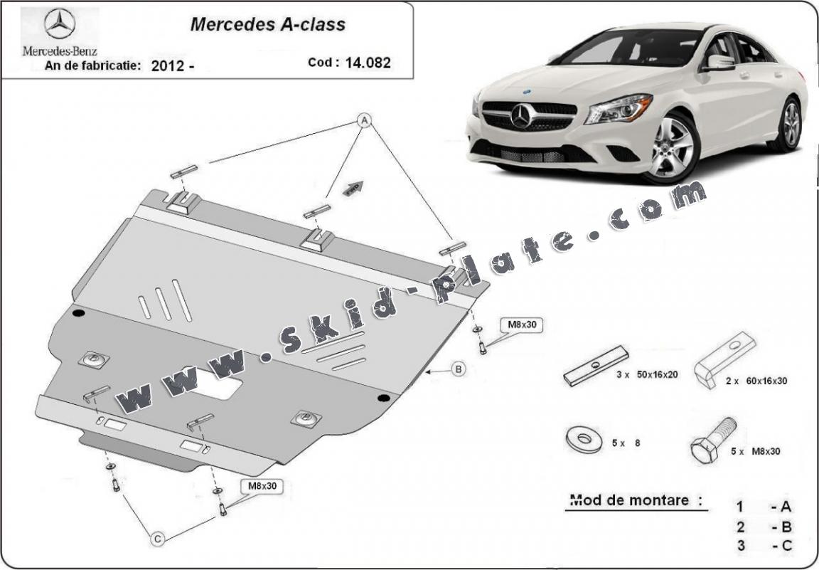 | The skid plate is new and fits perfectly for the Mercedes A-Class W176, with the following engine/drive versions: - manufactured between 2012 and 2020. |