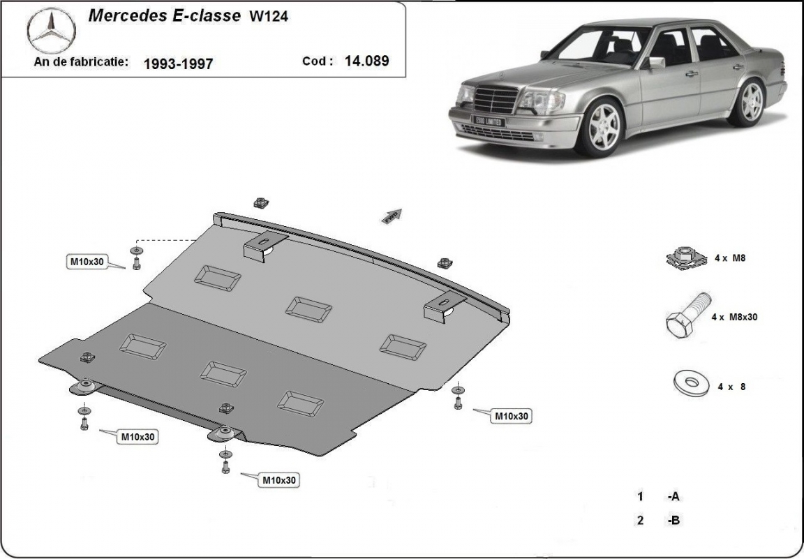Steel skid plate for Mercedes E-Classe W124 (1993-1997)