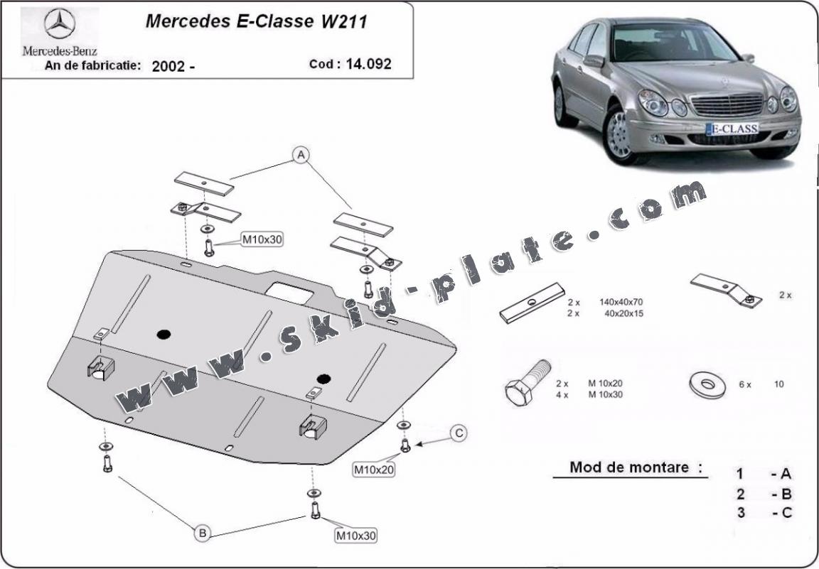 The skid plate is new and fits perfectly for all versions of Mercedes E-Classe W211 manufactured between 2002 and 2008.