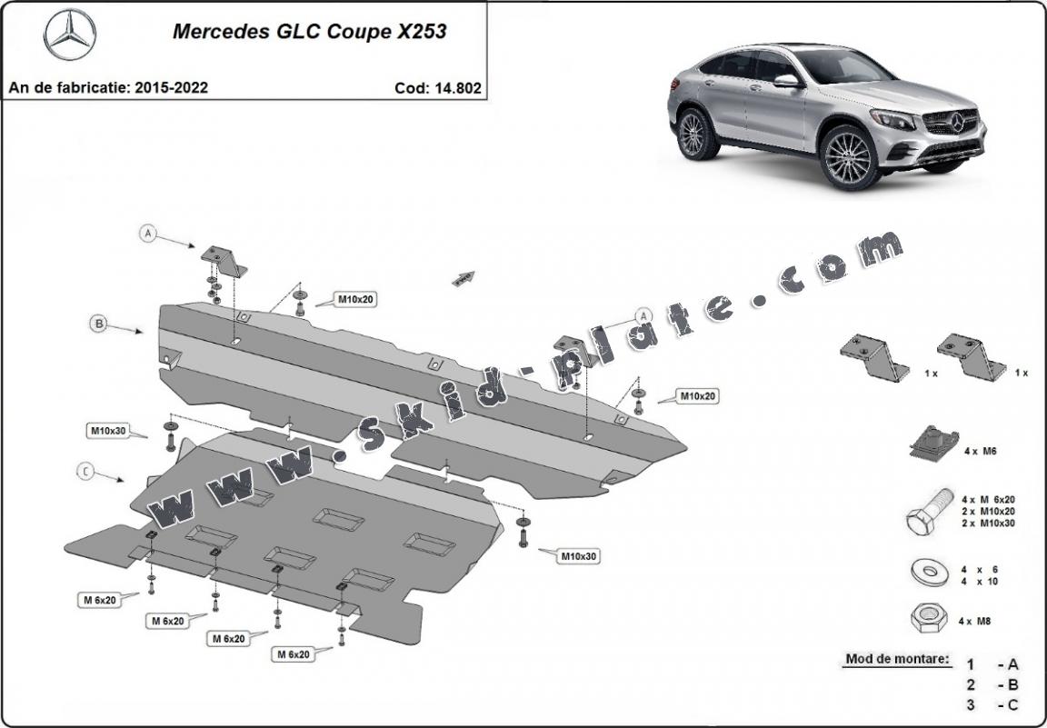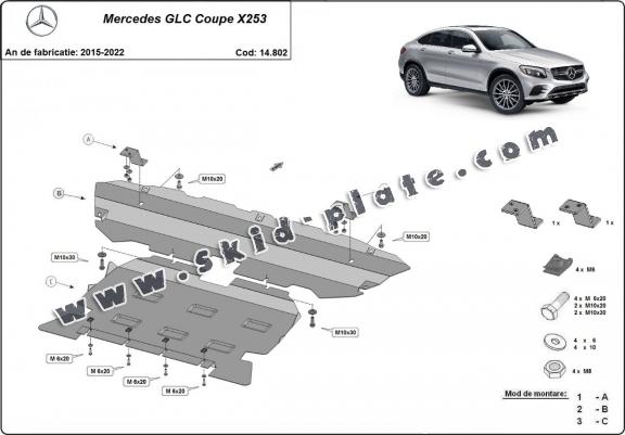 | The skid plate is new and fits perfectly for all versions of Mercedes GLC Coupe X253 manufactured between 2015 and 2020. |