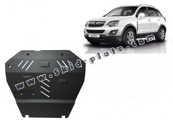 Skid plate for the protection of the: engine, gearbox The skid plate is new and fits perfectly for all versions of Opel Antara manufactured between 2010 and 2015. It has an opening for the oil sump, so it's removal won't be necessary to change the oil. Made out of 2 mm thick Steel plate. Screws, nuts, clips, all fastening accessories are included. All skid plates are powder coated to prevent corrosion. The exterior of the skid plate is provided with Steel reinforcements, which increases the resistance to impact. |