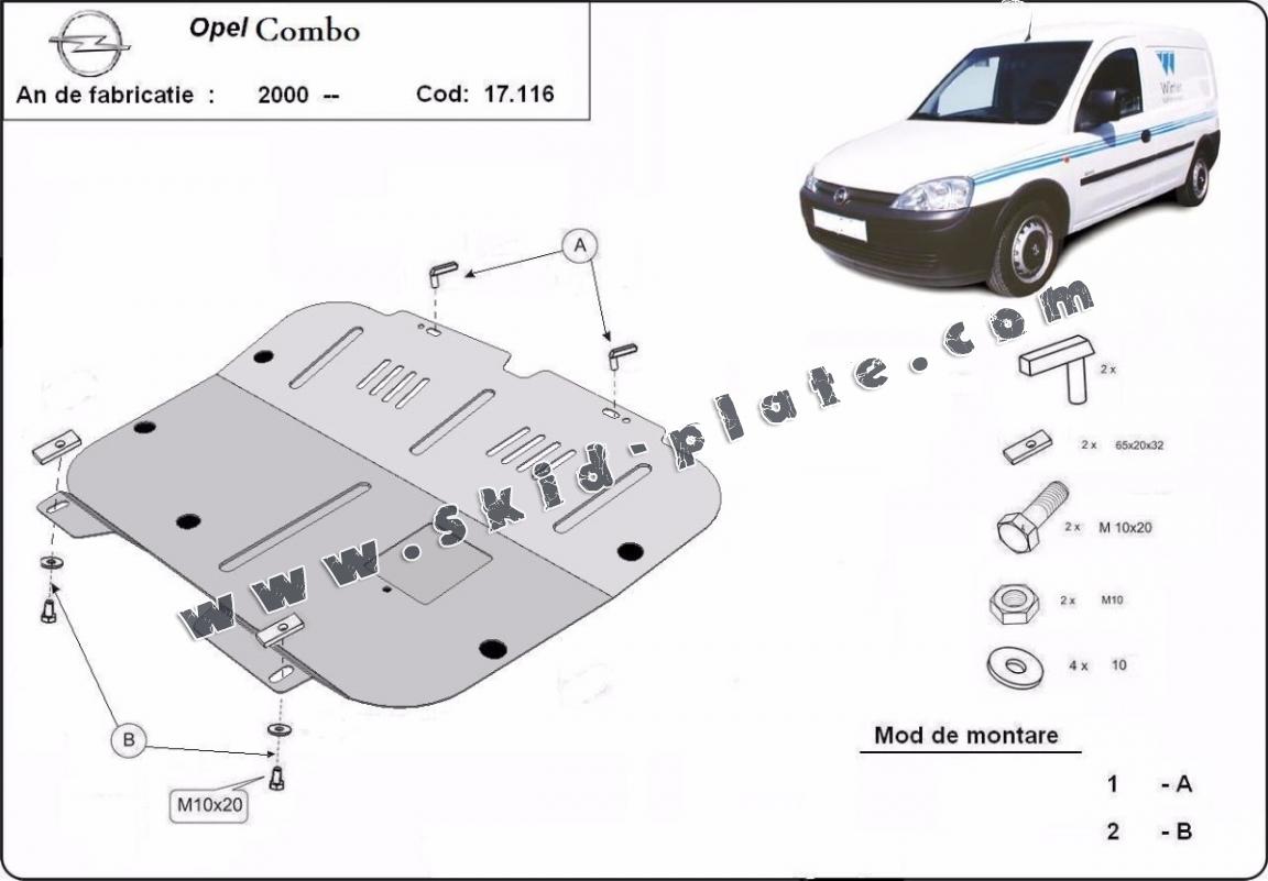 The skid plate is new and fits perfectly for all versions of Opel Combo manufactured between 2000 and 2011.
