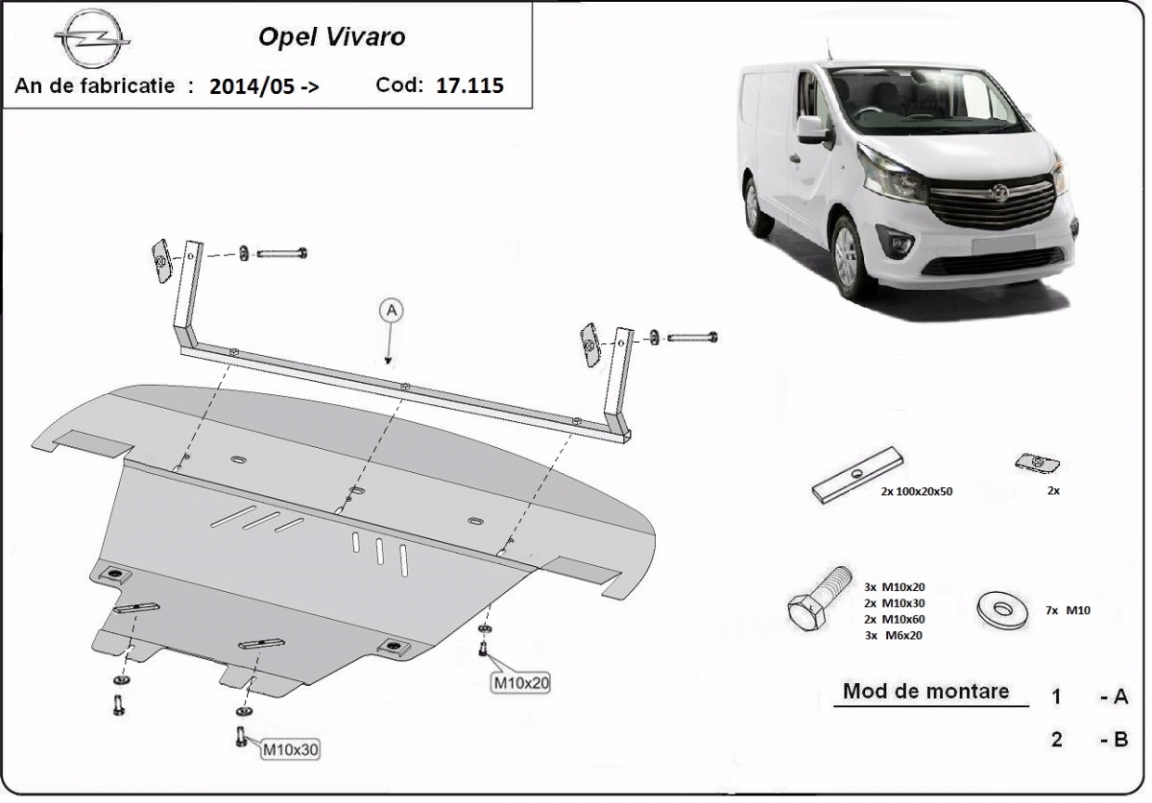 The skid plate is new and fits perfectly for all versions of Opel Vivaro manufactured between 2014 and 2019.