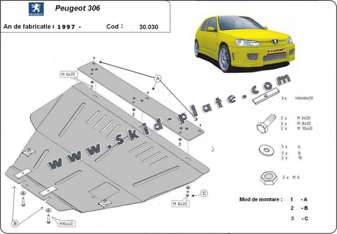 | The skid plate is new and fits perfectly for all versions of Peugeot 306 manufactured between 1997 and 2004. |