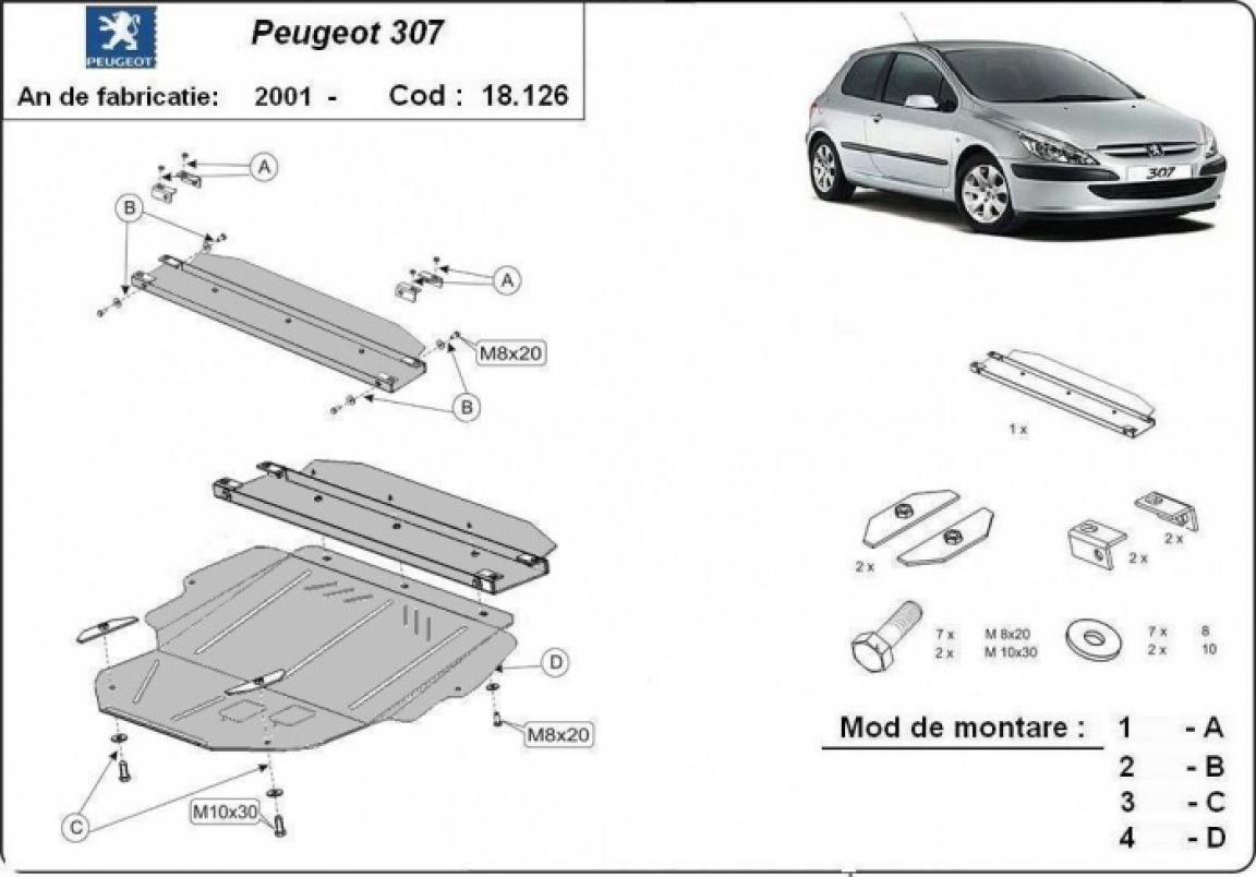 Steel skid plate for Peugeot 307 (2001-2008)