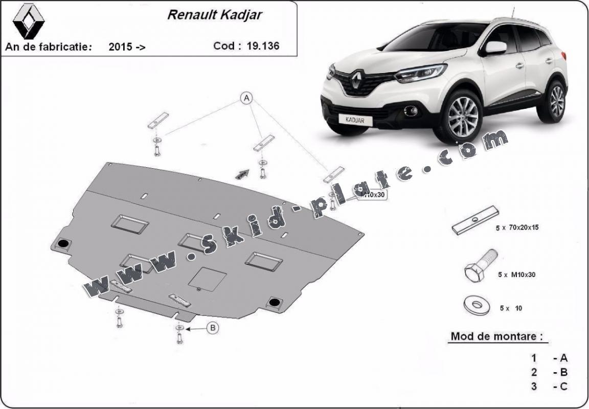 The skid plate is new and fits perfectly for all versions of Renault Kadjar manufactured between 2015 and 2020.