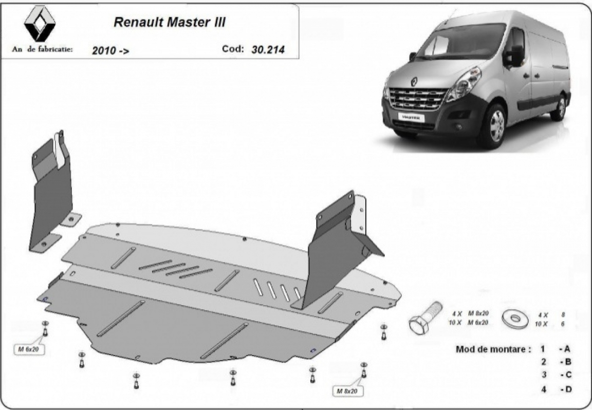 The skid plate is new and fits perfectly for all versions of Renault Master 3 manufactured between 2010 and 2024.