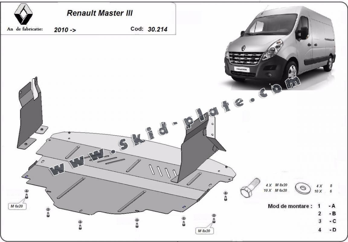 Steel skid plate for Renault Master 3