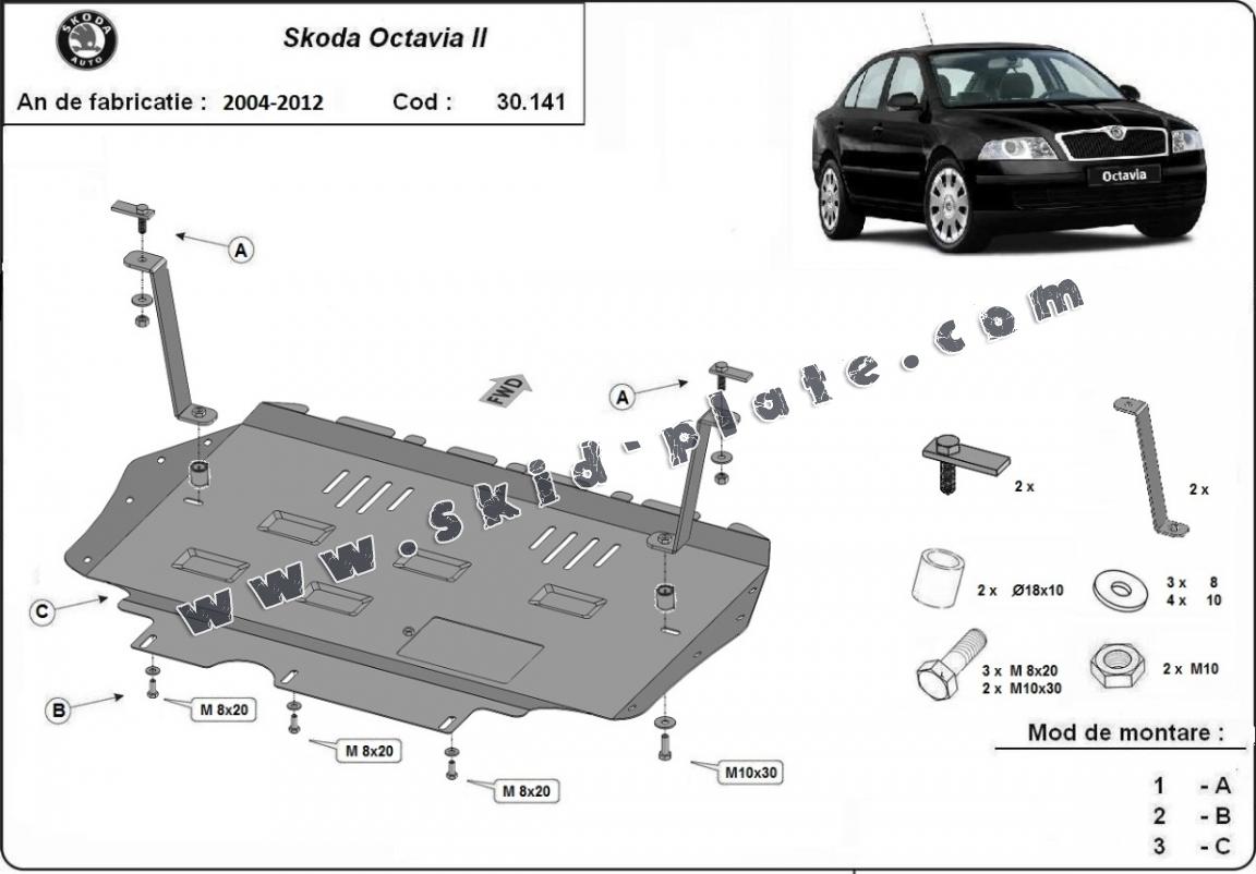 Steel skid plate for Skoda Octavia 2