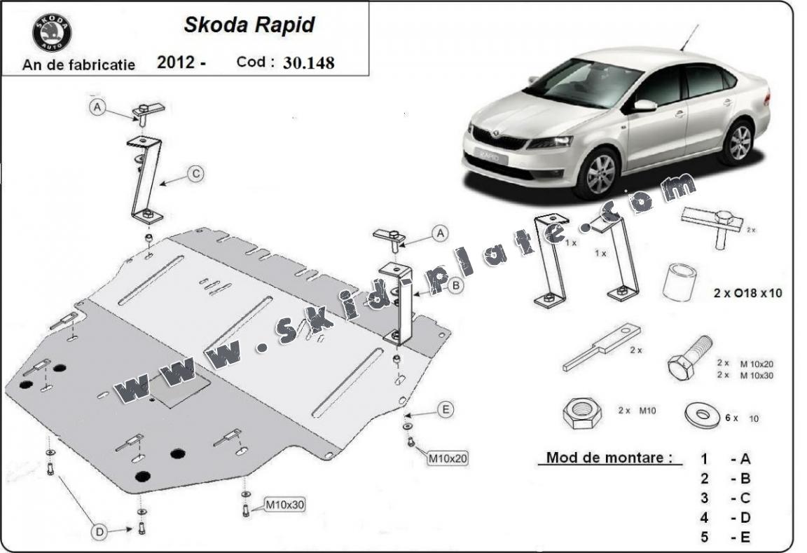 Steel skid plate for Skoda Rapid (2012-2019)