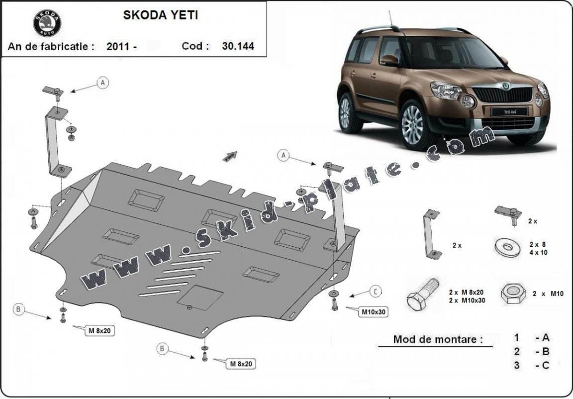 Steel skid plate for Skoda Yeti