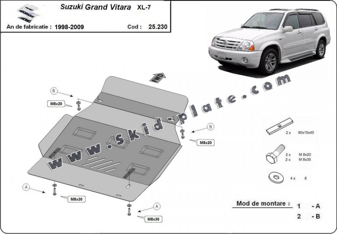 The skid plate is new and fits perfectly for all versions of Suzuki Grand Vitara XL-7 manufactured between 1999 and 2005.