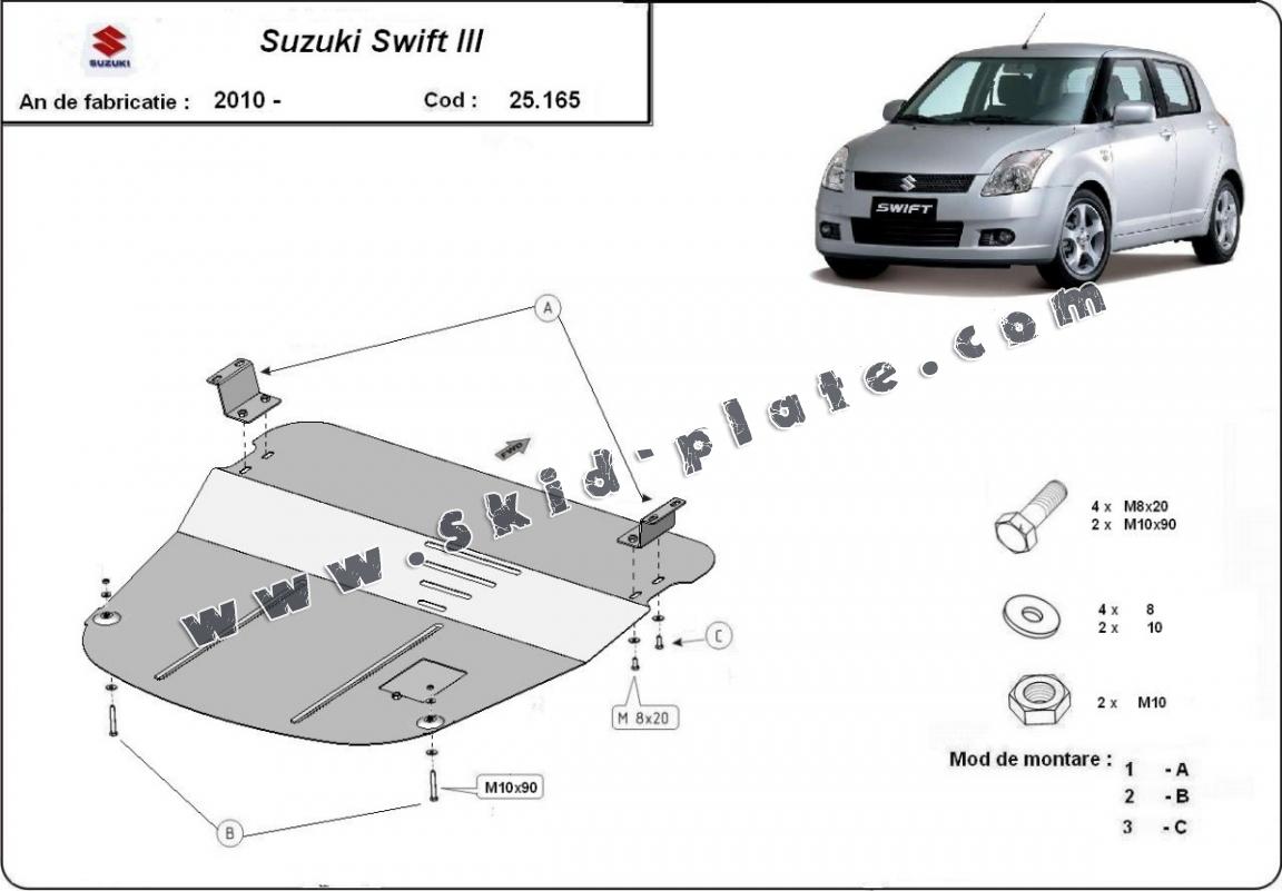 | The skid plate is new and fits perfectly for all versions of Suzuki Swift 3 manufactured between 2010 and 2017. |