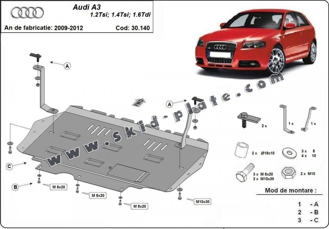 Steel skid plate for the protection of the engine and the gearbox for Audi A3 (2008-2012)