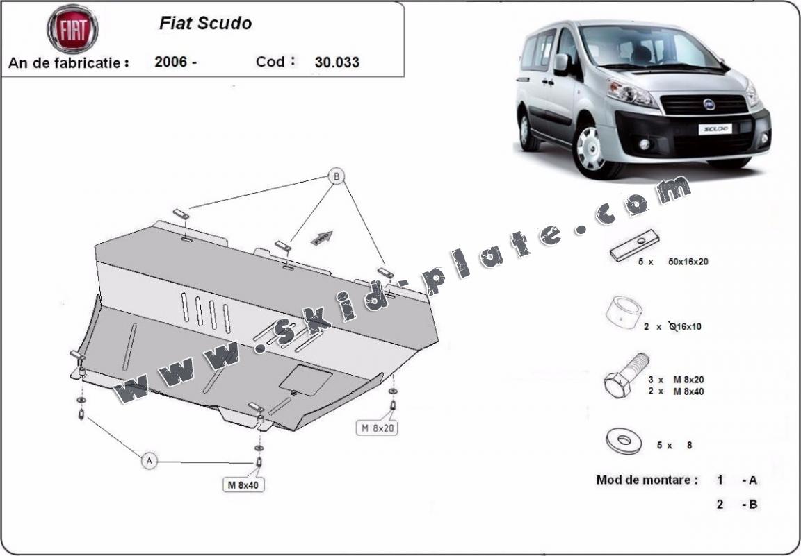 Steel skid plate for the protection of the engine and the gearbox for Fiat Scudo
