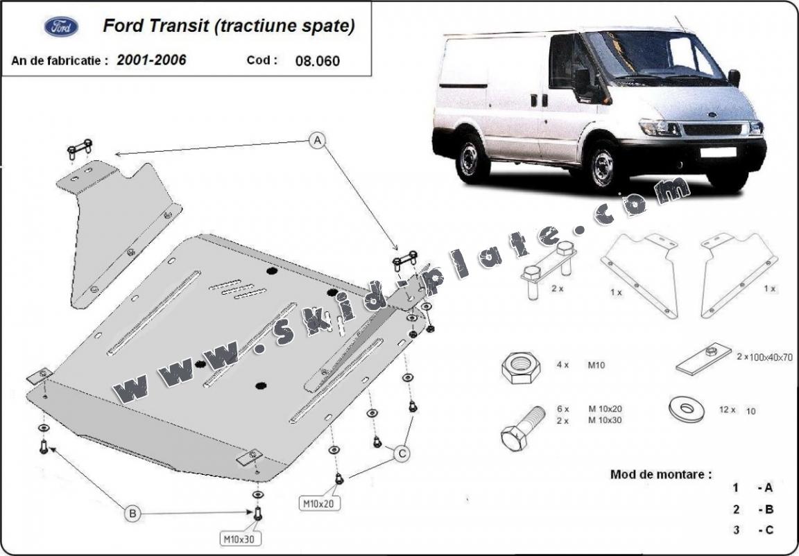 Steel skid plate for the protection of the engine and the gearbox for Ford Transit - RWD (2001-2006)