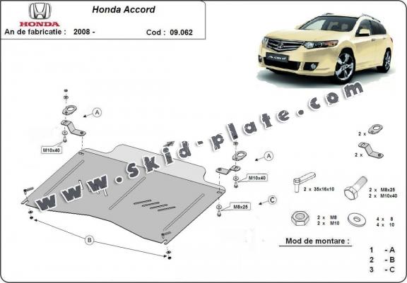 Steel skid plate for the protection of the engine and the gearbox for Honda Accord (2008-2012)