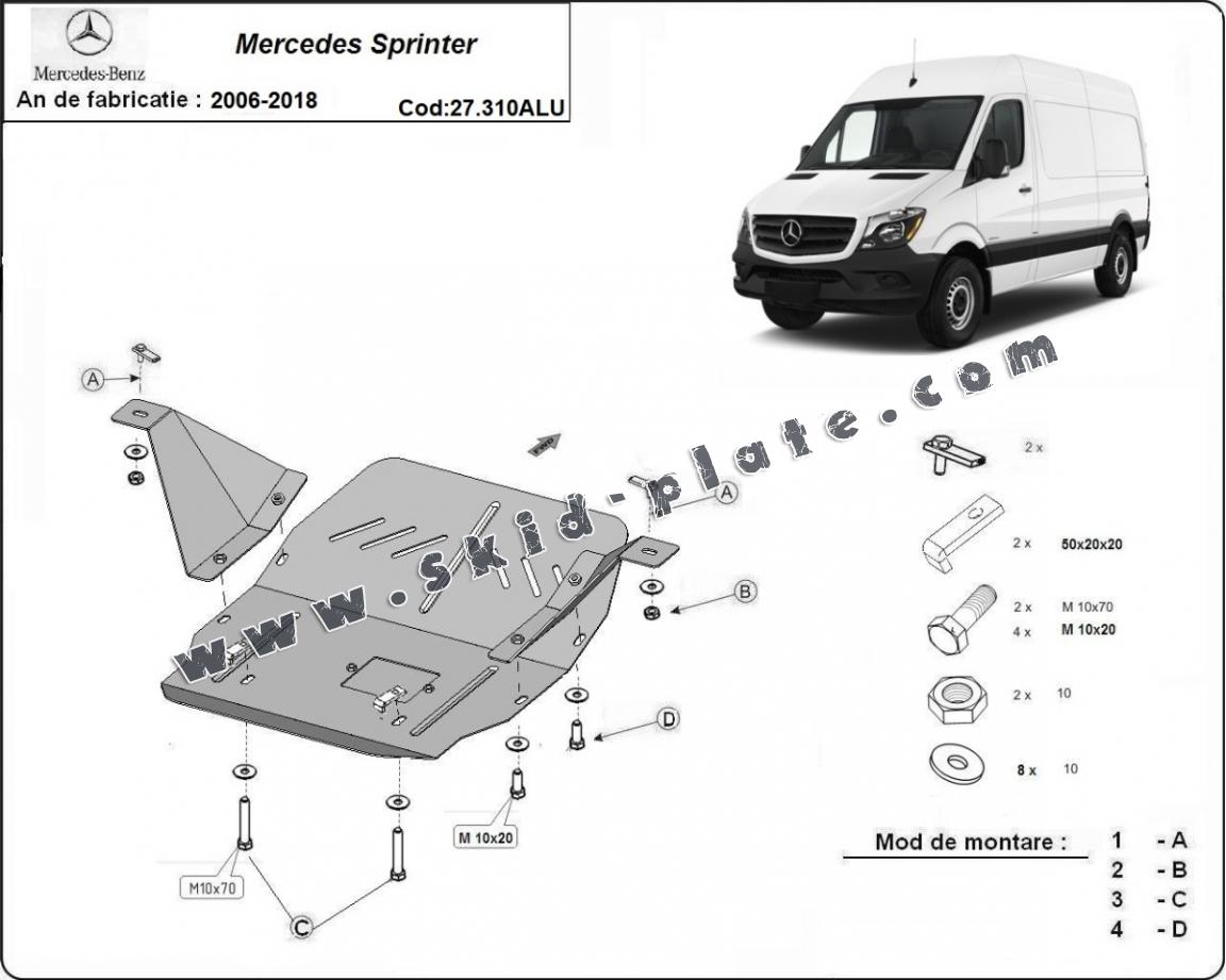 Aluminum skid plate for the protection of the engine and the gearbox for Mercedes Sprinter (2006-2018)
