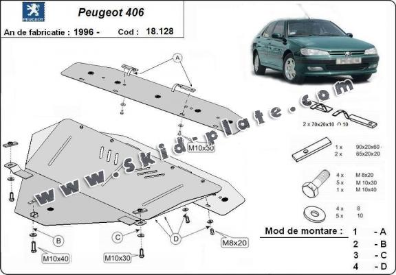 Steel skid plate for the protection of the engine and the gearbox for Peugeot 406 (1996-2004)